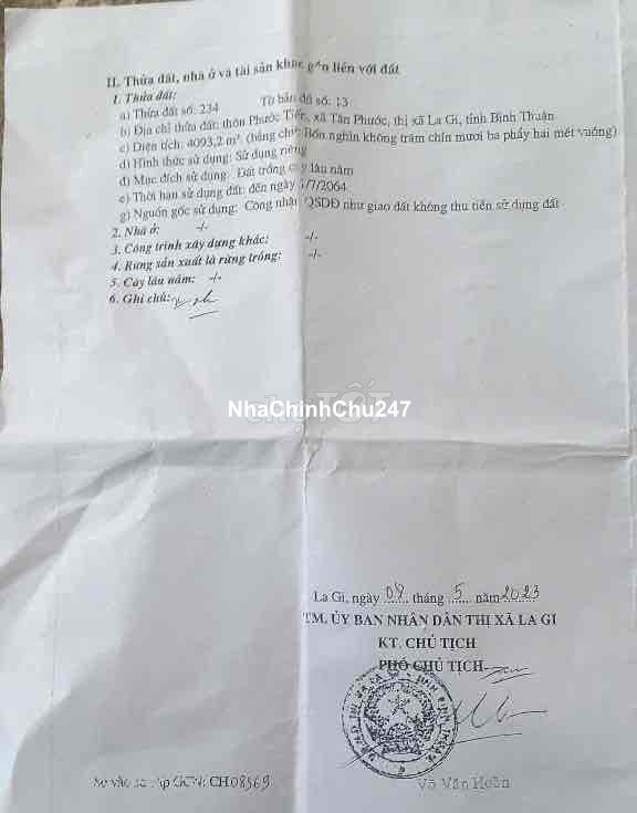 Chủ Ngộp Bán Đất Xào 23x75m (2422m2) Đ.Số 1 Tân Bình Lagi Cách Biển1km