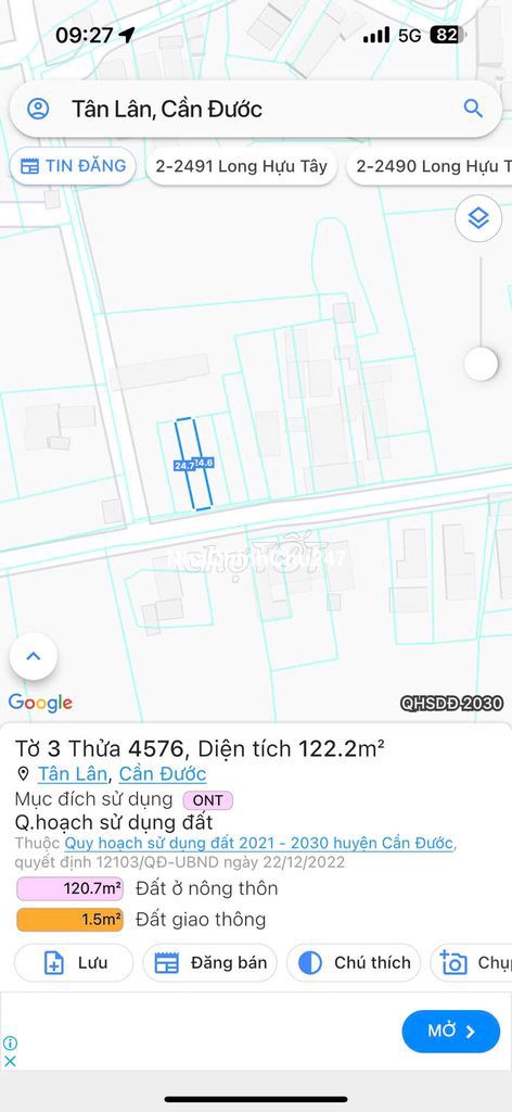 Chủ cần bán gấp 2 nền liền kề 122m2(5*24,5) thổ mt gtnt ấp Bà Thoại xã Tân Lân , vị trí nền đẹp đã san lắp xung quanh dân cư đông thích hợp kinh doanh hay mua để dành. - Mặt tiền xe hơi 4 mét đường thông thoáng giữa các khu vực - Gần khu công nghiệp cầu cảng phước đông chỉ 1km - Xung quanh nhà dân đông đúc. - Gần trường học , chợ , trạm y tế,....tầm 500 mét - DT 122m2(5*24,5) , shr , công chứng liền - Gía 650tr/nền Nhận ký gửi mua bán đất cần đước - cần giuộc giá ưu đãi Liên hệ gặp Thanh để được hỗ trợ tư vấn cũng như được giá tốt đầu tư