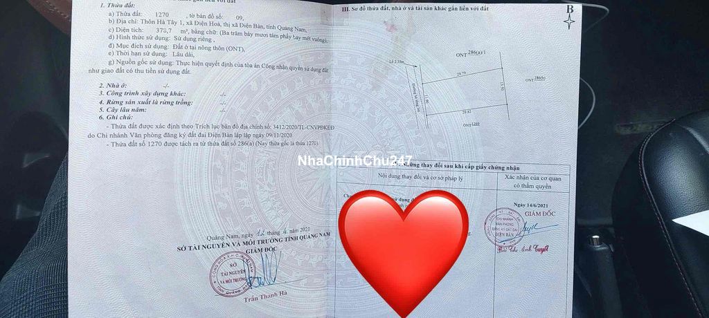 Dự án: Thông tin chi tiết: 🔥 BÁN ĐẤT CHÍNH CHỦ – ĐIỆN HÒA, ĐIỆN BÀN, QUẢNG NAM 🔥 • 📍 Vị trí: Thôn Hà Tây 1, xã Điện Hòa, TX. Điện Bàn, Quảng Nam • 📐 Diện tích: 378 m² (đất ở nông thôn – ONT) • 📄 Pháp lý: Sổ đỏ chính chủ, rõ ràng, sang tên nhanh • 🏡 Mục đích sử dụng: Đất ở lâu dài • 🚗 Đường: Ô tô vào tận nơi (theo sơ đồ thửa đất) ✨ Ưu điểm: • Khu dân cư hiện hữu, yên tĩnh, phù hợp xây nhà ở hoặc đầu tư • Diện tích rộng, dễ thiết kế nhà vườn • Gần trung tâm, tiện ích xung quanh đầy đủ 💰 Giá bán: (bạn tự điền giá) 📞 Liên hệ: (số điện thoại của bạn) 👉 Quan tâm inbox hoặc gọi trực tiếp để xem đất!