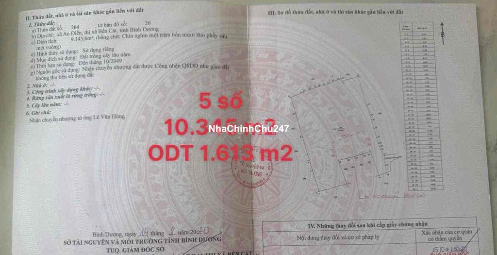 Bán đat chính chủ, dt ton 10.345m. Thổ cu 1.613 m. Ai can ap zalo ***