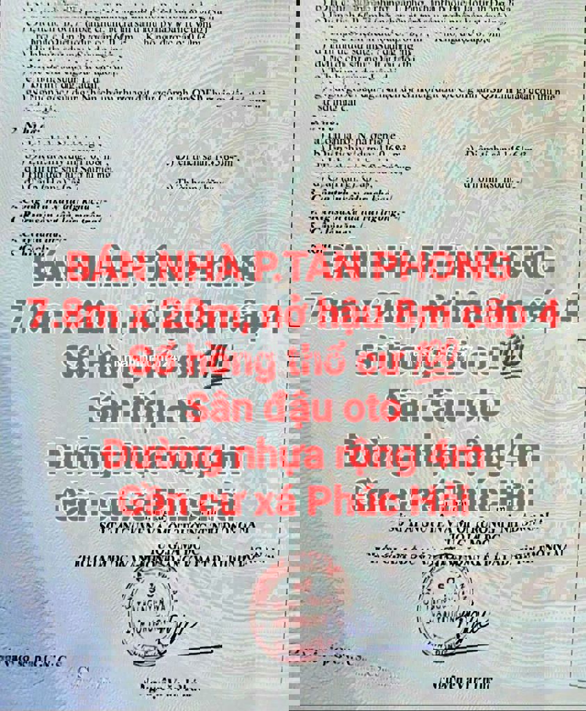 Bán nhà đất P.Tân Phong sổ hồng riêng đất ở thổ cư 💯 gần chợ, cư xá Phúc Hải, CA, UBND phường, nhà thờ, trường mầm non, cấp 1, 2, ... giá bán còn bớt + hỗ trợ vay : 1/ Nhà : 7.8m x 20m, nở hậu 8m cấp 4 vẫn đang ở tốt, sổ hồng riêng hoàn công có 2 phòng ngủ (làm được thành 3) + phòng khách + phòng thờ + nhà bếp + sân trước đậu oto + WC, đường nhựa rộng 4m. -> Giá rẻ : 4.35 tỷ 2/ Đất : 6m x 22m đường nhựa rộng 6m thông thoáng. -> Giá bán : 3.69 tỷ Vui lòng alo