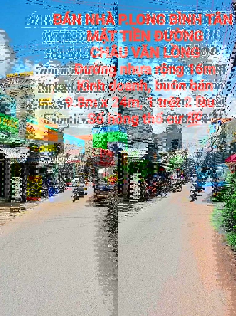 Bán nhà đất : 9.8m x 24m, 1 trệt 2 lầu đúc betong chắc chắn còn mới vẫn đang ở tốt, sổ hồng riêng đất ở thổ cư 💯 có 5 phòng ngủ + phòng khách + phòng thờ + nhà bếp + balcon + sân trước đậu oto + 2WC. Nằm ngay MẶT TIỀN đường nhựa Châu Văn Lồng rộng 16m thông thoáng xe cộ, dân cư qua lại đông đúc suốt ngày đêm thuận tiện vừa ở vừa kinh doanh, buôn bán. -> Kẹt tiền bán rẻ : 6.8 tỷ, còn bớt. Vui lòng alo
