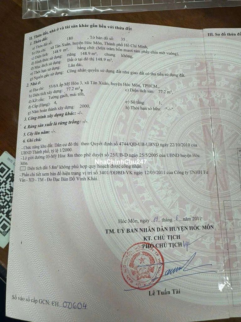💋 464 Hàng Thơm Xã Tân Xuân Hóc Môn ___ Đường xe tải tránh nhau . Khu dân cư hiện hữu xdtd ___ Vị Trí* gần đường đồng tâm và song hành ___ DT 4,10 x 35 nở hậu full thổ cư 149m2 ___ GIÁ 4,5TY TL CHÍNH CHỦ Hướng Tây Nam LH MR HOAN XEM nhà cg 0868.542.88bon Zalo