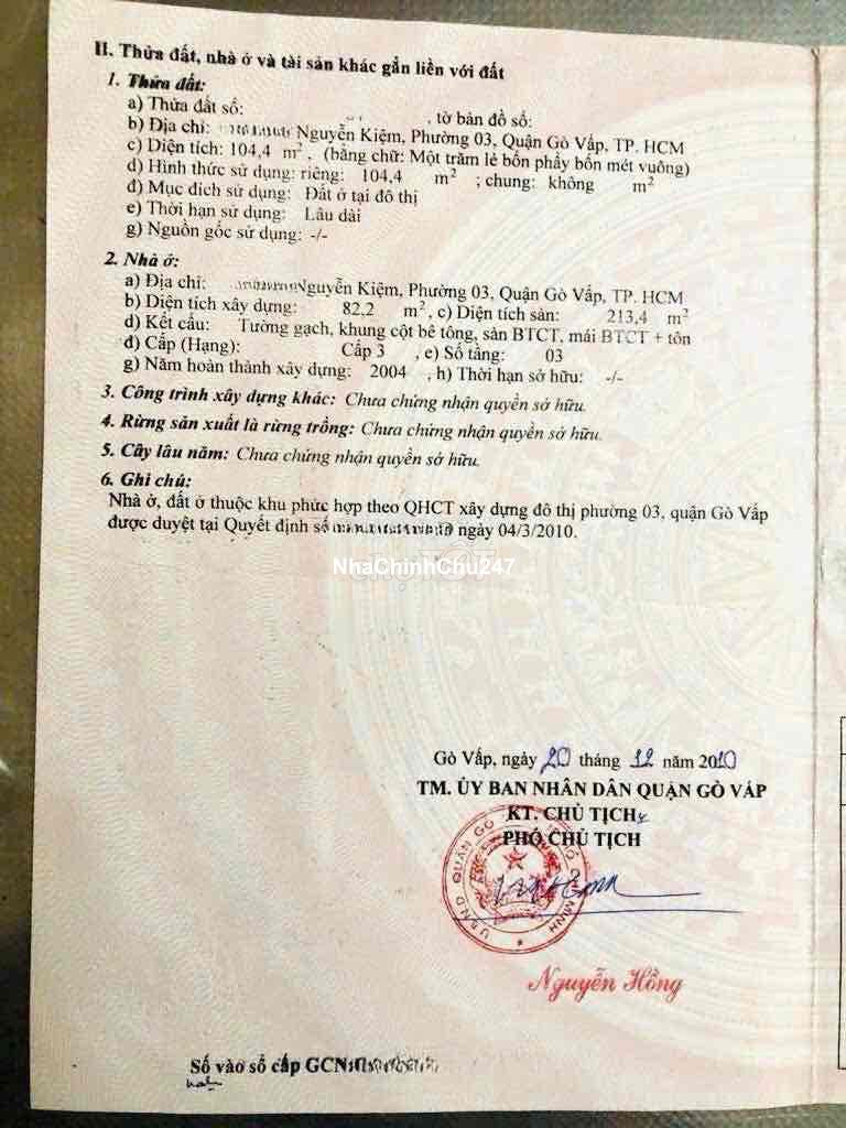 BÁN NHÀ MẶT TIỀN KINH DOANH Bán nhà : 79/25 Đường số 2, Phường 03, Gò Vấp (NGUYỄN KIỆM - BV175 - SÂN BAY) 💰Giá bán: 11,9 tỷ (bớt Lộc) ☘️ Dt: (5 ❌ 23). Đất: 104m2 Xây dựng sàn:213,4m2 ✈️✈️✈️ 👉 Kc: 1 trệt 2 lầu vị trí kinh doanh thông ♻️🚗👉 Nhà chính chủ khách qua gặp chủ làm việc 🧭 Hướng Tây Bắc ☎️LH: *** - *** Hoan