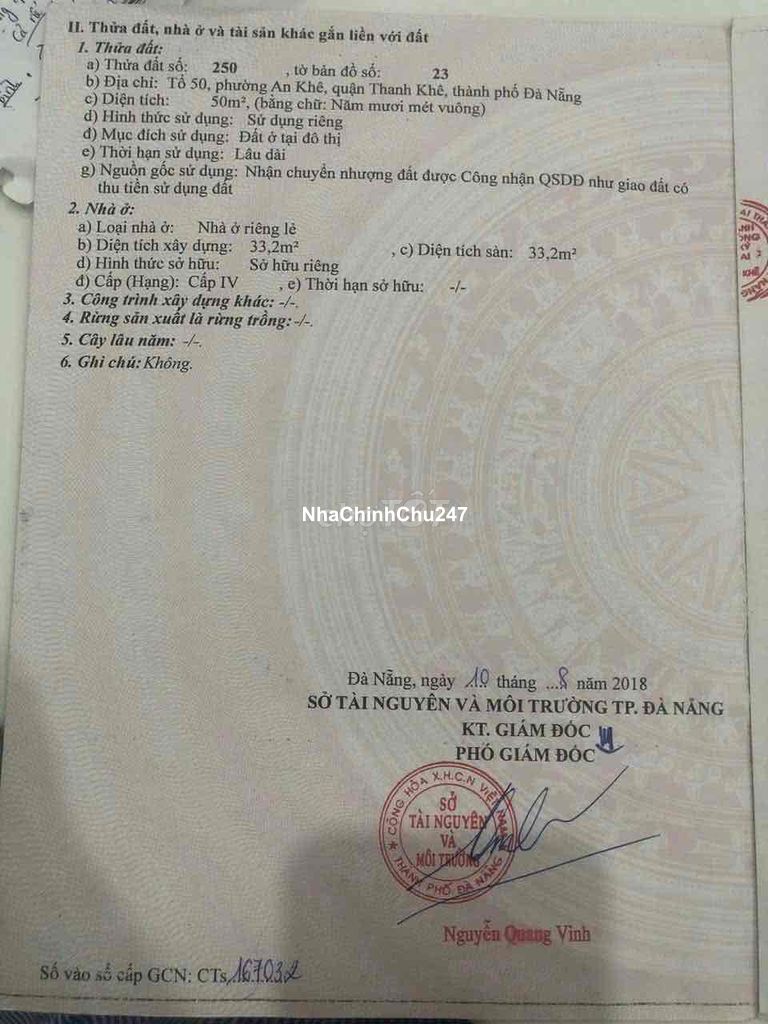 Còn sót lại ngôi nhà đẹp giá rẻ nhất khu vực Thanh Khê Bán nhà cấp 4 thanh khê gần uỷ ban nhân dân phường khu dân trí cao - K241/6x trường chinh - 1 sân để xe 1 khách 1 bếp 1 phòng ngủ 1 phơi - Diện tích : 50m2 nở hậu - Hướng : Đông nam mát mẻ - Giá 2 tỷ 270 thương lương nhẹ
