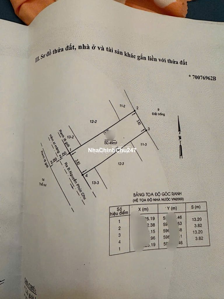 Bán Nhà nát Đất vuông vức 50.5m2 đường trước nhà 4m hết lộ giới