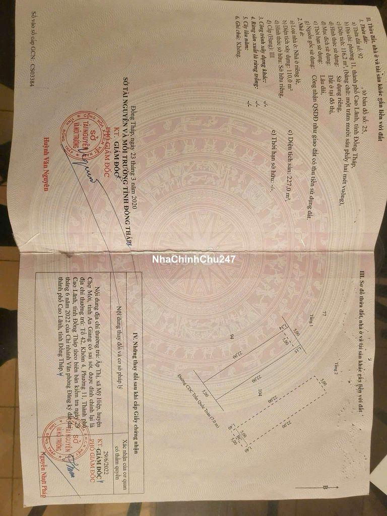 🏠 BÁN NHÀ PHỐ CHÍNH CHỦ - MẶT TIỀN ĐƯỜNG LÃNH BINH THĂNG, TP. CAO LÃNH Do nhu cầu thay đổi, tôi cần nhượng lại căn nhà phố tọa lạc tại vị trí đẹp, giao thông thuận tiện tại Phường 11, TP. Cao Lãnh, Đồng Tháp. 📍 Thông tin chi tiết: Địa chỉ: Đường Lãnh Binh Thăng, Phường 11, TP. Cao Lãnh, tỉnh Đồng Tháp. Diện tích đất: 116,2 m^2 (Ngang 5m x Dài hơn 22m) - Thổ cư 100%. Diện tích xây dựng: 110,0 m^2. Tổng diện tích sàn: 227,0 m^2 (Nhà 1 trệt 1 lầu, không gian rộng rãi, thoáng mát). Kết cấu: Nhà cấp III, kiên cố, thiết kế hiện đại. Hướng mặt tiền: Đường Lãnh Binh Thăng (lộ giới 7.0m), xe hơi ra vào thoải mái, vỉa hè thông thoáng. ✨ Ưu điểm nổi bật: Vị trí đắc địa: Nằm trong khu dân cư an ninh, yên tĩnh, dân trí cao. Giao thông: Mặt tiền đường lớn 7m, kết nối trực tiếp với các trục đường chính, cực kỳ thuận tiện cho việc ở hoặc kinh doanh, làm văn phòng, Kinh Doanh Nhà Nghĩ. Pháp lý: Sổ hồng riêng chính chủ, sang tên nhanh chóng, không tranh chấp. Hiện trạng: Nhà còn rất mới. 💰 Giá bán: (Có thương lượng cho khách thiện chí) 📞 Liên hệ chính chủ xem nhà: Tôi