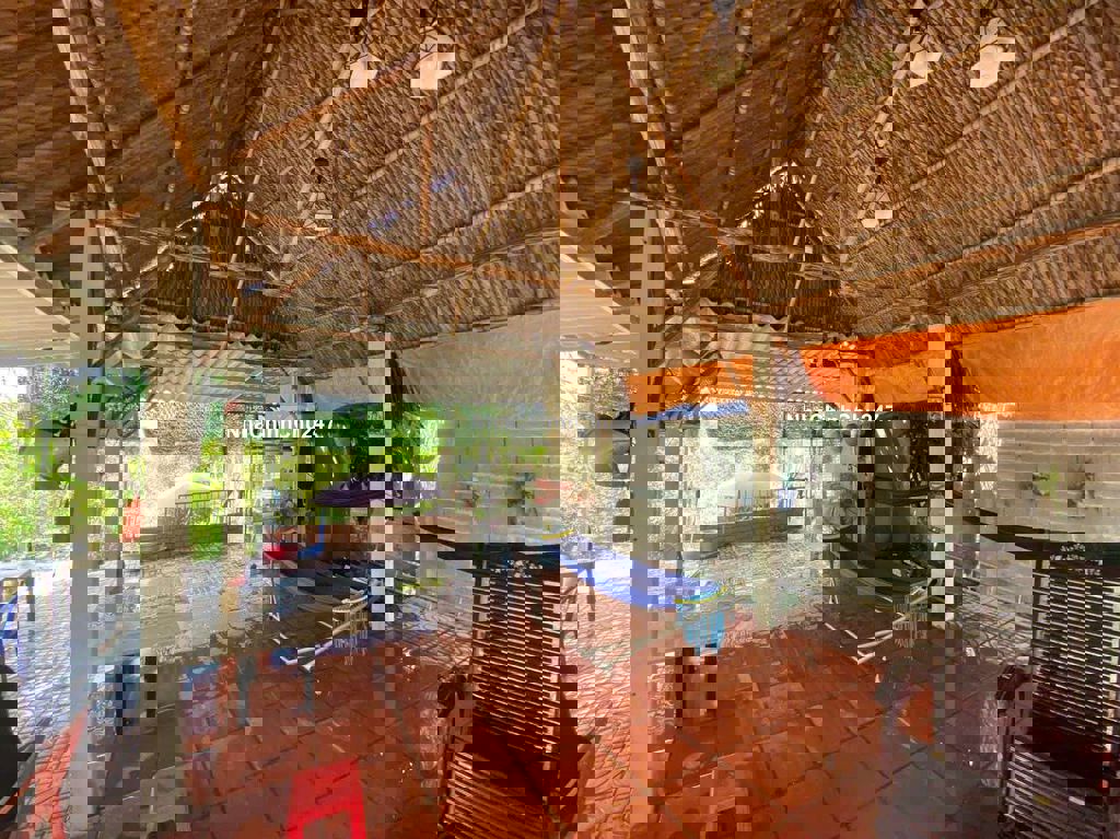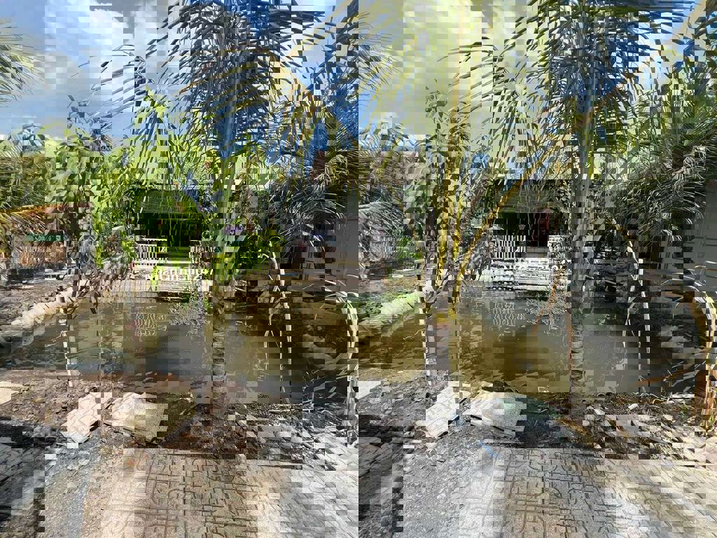 Bán nhà vườn, đường thông gần cầu rạch tra vào khoảng 450m Tổng dt 1065m Hiện trạng đã có nhà cấp 4 gồm 2pn, 1 nhà lá để nghỉ mát, ao cá, vườn cây ăn trái. Gâbf sông rạch tra rất thoáng mát Giá bán 6tỷ850 còn thương lượng.
