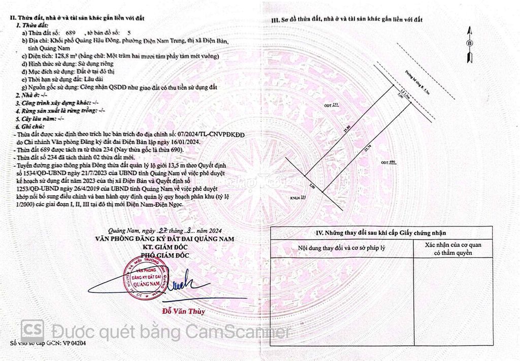 Thửa đất lớn thuộc xã Điện Hoà (cũ), chính chủ bán