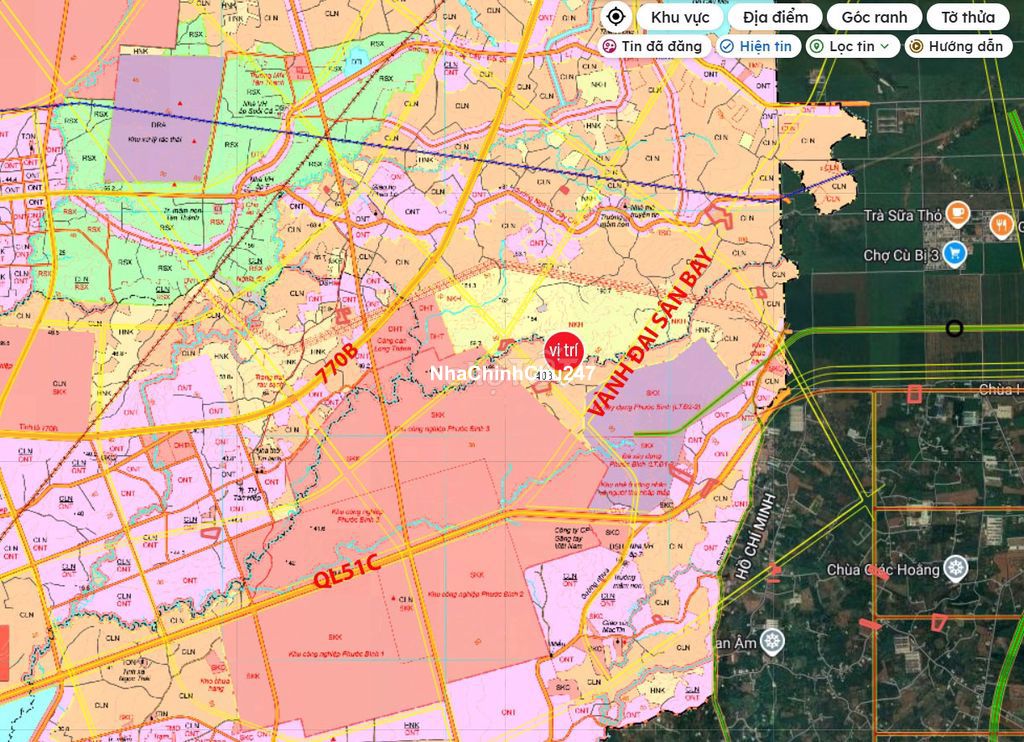 Đất đẹp nở hậu, vị trí nằm giữa 2 tuyến đường quy hoạch đang triển khai quan trọng là 770B và đường QL51C chỉ vài chục mét - Cách trục đường vành đai sân bay QT Long Thành chỉ tầm 100 m - Cách đường kết nối vào cổng sau sân bay chỉ tầm 20m. - Cách sân bay QT Long Thành chỉ tầm 8km theo trục đo khoản cách - Liền kề với KCN Phước Bình Mở rộng, cách các tuyến đường trọng điểm như cao tốc, vành đai IV..... trong bán kính 8km Mình chính chủ, đang cần tiền xoay sở nên bán bớt 1 lô góc đẹp 2 mặt tiền( ở đây mình 2 lô ) Hiện tại ngân hàng đang cho vay 1 tỷ/1 lô. Anh em đầu tư nào thiện chí mình sẽ bớt lộc Giá này là bao lời với anh em rồi nhé, giờ kiếm không ra đất mà giá như vậy nữa nhé.