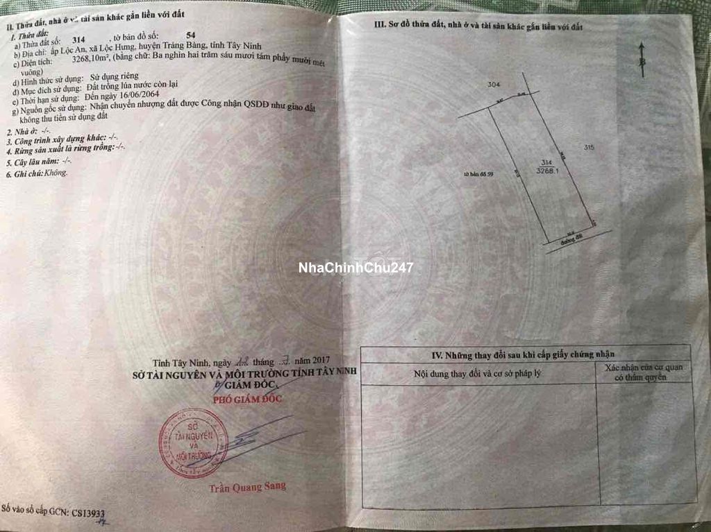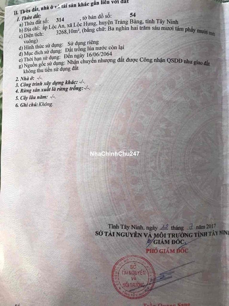 Cần bán đất nông nghiệp, diện tích 3268,10m2 tại Xã Lộc Hưng, Trảng Bàng, Tây Ninh. Gần mặt tiền đường lớn. Giá còn thương lượng.