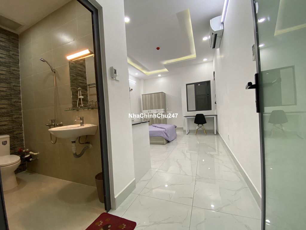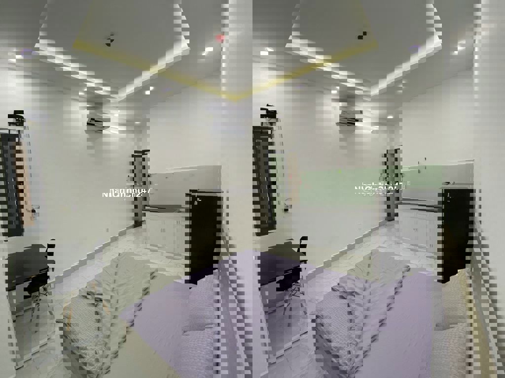 Nội thất - full nội thất mới: Tủ, gường, nệm, bàn, ghế, tủ lạnh, kệ bếp, máy lạnh inverter Nhà vệ sinh sử dụng trang thiết bị cao cấp - nước nóng Tòa nhà có thang máy - khóa vân tay - camera phủ khắp nhà . Tòa nhà chỉ có 09 phòng nên rất ổn định và an ninh, yên tĩnh Phí dịch vụ: nước 100k/người, Wifi, rác. vệ sinh hành lang, máy giặt....: 200k/phòngtháng, điện 3.5k/khw