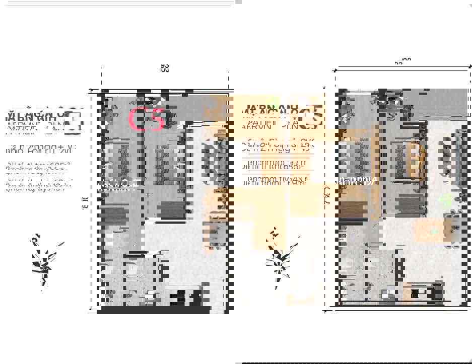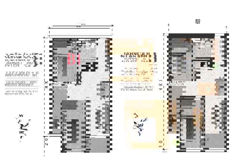 Diện tích: 59 m2