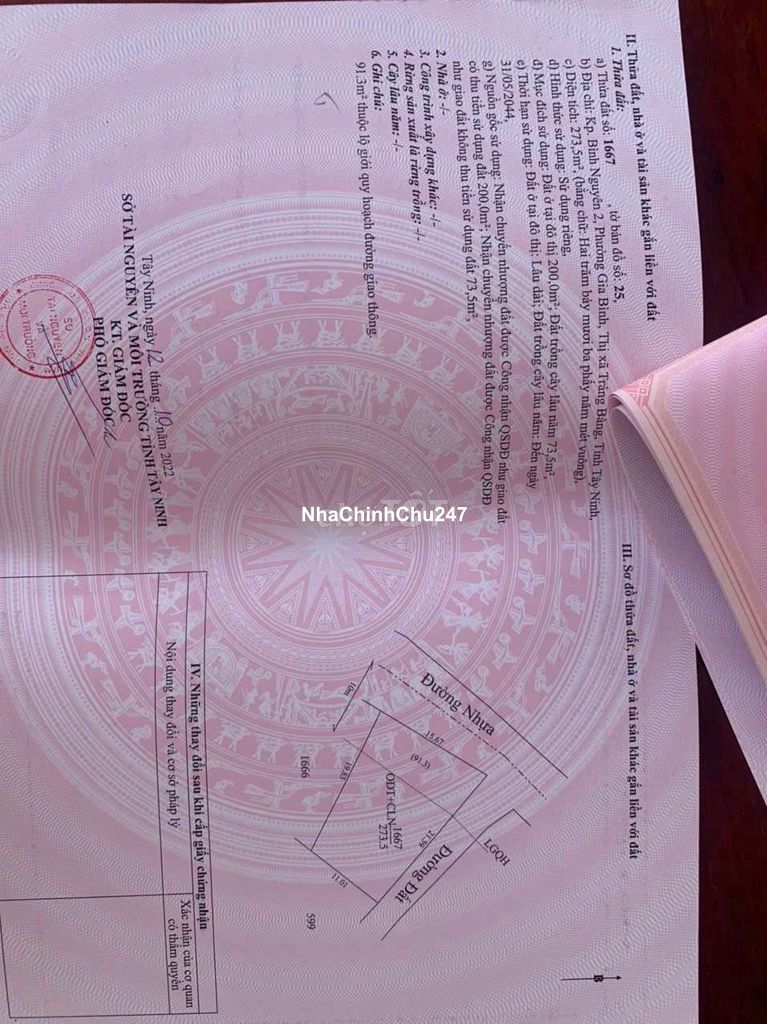 Tôi chính chủ cần lô đất 2MT cách KCN Thành Thành Công 1km, cách đuờng Hồ Chí Minh 200m, cầu vuợt Ql22 1km DT : 11x23m 273m2 có 200m2 ODT Đã tách 2 lô 5,5m mặt 2MT đuờng nhựa 10m hẻm hông 4m Giá :1,2 tỷ TL chính chủ Hh cho ace MG, Miễn tiếp QC, đăng tin