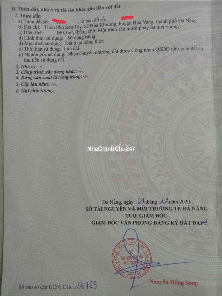 Dự án: Thông tin chi tiết: Chính chủ cần bán lô đất sát Khu Tái Định Cư thôn Phú Sơn Tây xã Hòa Tiến mới , TP Đà Nẵng .diện tích 160,3 m² ngang 6m Vị trí: sát Khu Tái Định Cư, gần hội trường thôn . cách đường DH8 chỉ 20m, cách chợ Hòa Khương và UBND xã hòa tiến mới ,trường cấp 2 tầm 100m. đặc biệt lô đất ngang 6m là lô góc 2mặt đường bê tông 5m Đất đẹp, vuông vắn cao ráo sạch sẽ . Đã có mốc giới rõ ràng. Anh chị có nhu cầu liên hệ Đt zalo: ***