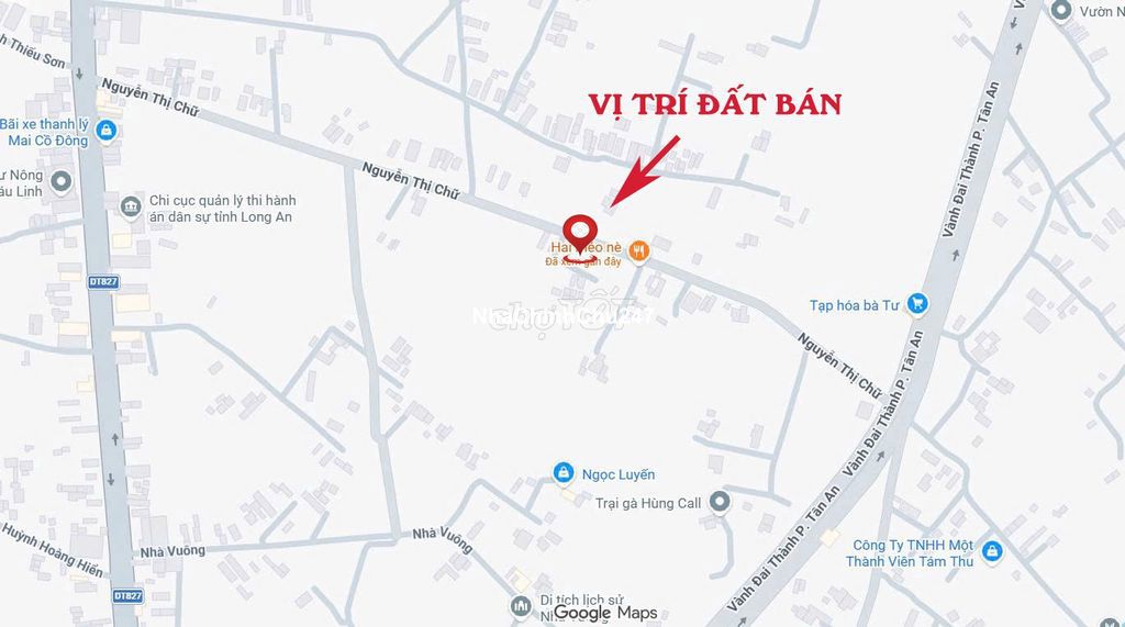 CHÍNH CHỦ BÁN GẤP 500m2 ĐẤT GỒM: - 250m2 đất thổ, thửa 630 tờ số 7, Mười x hai lăm mét, vị trí như hình. - 250m2 đất vườn, thửa 499 tờ số 7, phần còn lại. TỔNG CỘNG MẢNH ĐẤT 500M2, VỚI CÁC LỢI THẾ: - Mặt tiền đường nhựa 12m NGUYỄN THỊ CHỮ, - GẦN BỆNH VIÊN ĐA KHOA TÂN AN, BỆNH VIỆN SẢN NHI, CHỢ PHƯỜNG 3, ĐƯỜNG VÀNH ĐAI THÀNH PHỐ TÂN AN, ĐƯỜNG TỈNH 827 VÀ CÁC TUYẾN ĐƯỜNG HUYẾT MẠCH TP TÂN AN. - Vị trí đẹp đường lớn, liền kề Khu dân cư Bình Tâm, khu vực đang phát triển mạnh. Thích hợp làm dự án, kho bãi, hoặc đầu tư lâu dài. - Giá 4 tỷ 6 thương lượng chính chủ, Miss Diễm sau 12h trưa hàng ngày, call/yalo *** (***)