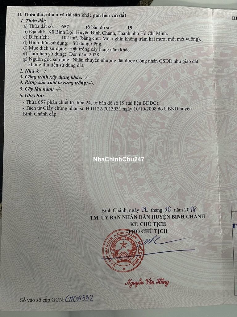 CHÍNH CHỦ - BÁN ĐẤT 1021M2 ĐƯỜNG KÊNH 8 - VƯỜN THƠM - BÌNH CHÁNH
