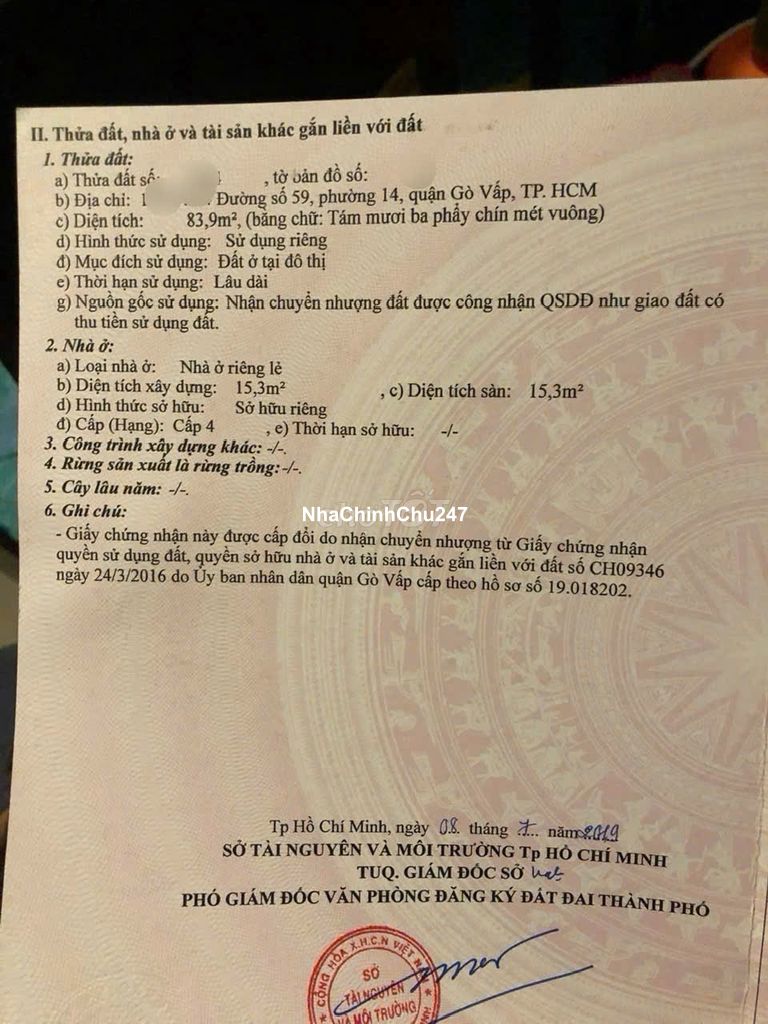 Chính chủ Bán đất gần ccDreamhome, P14. dt 4.7x19m.hxh thông.7ti350 TL