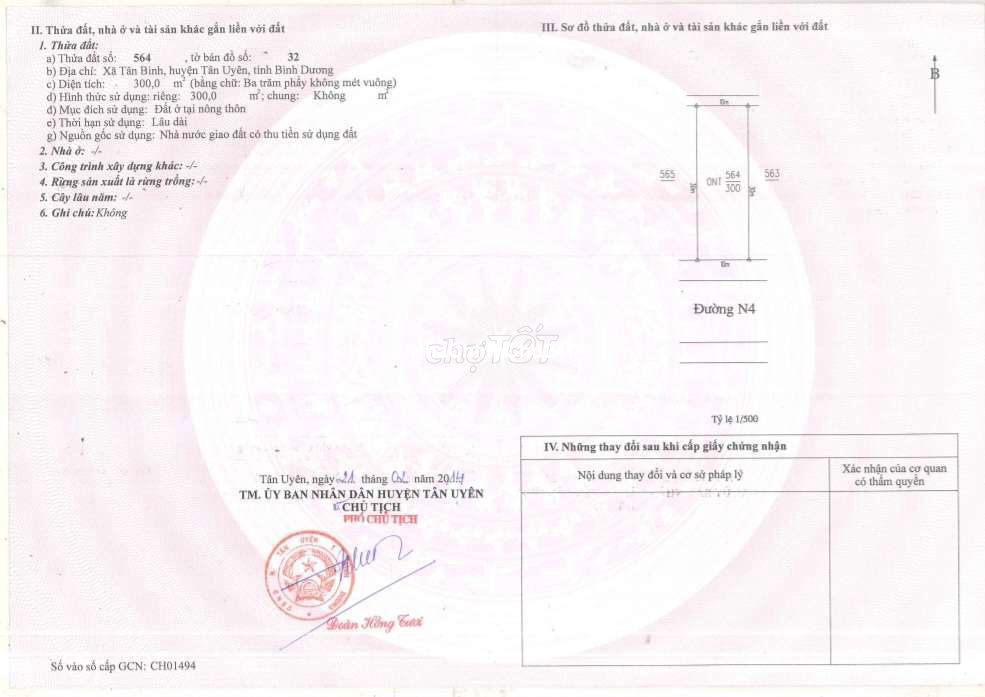 Chính chủ bán lô đất mặt tiền kinh doanh trục đường lớn N4 ngay Vsip2 , diện tích 300m2 giá 5tỷ9 còn thương lượng - Diện tích 300m2 ngang 10x30 (thổ cư 100%) xây dựng tự do, thuận tiện kinh doanh mua bán. - Vị trí mặt tiền kinh doanh trục đường lớn N4 nhựa 2 chiều thông thoáng 20m có vẻ hè rộng. - Sẵn sổ pháp lí minh bạch chính chủ sang tên liền