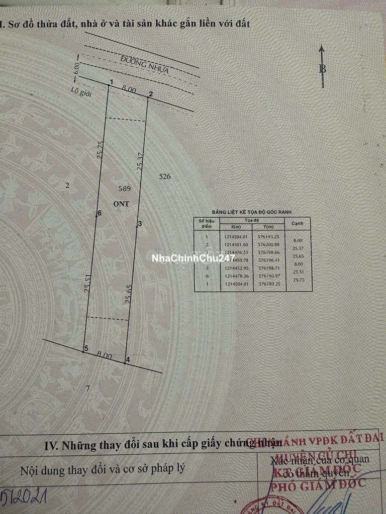 Chinh chủ gia đình can bán đất mặt tiền đường Phạm Thị Thàng, xã Phước Hiệp, huyện Củ Chi. Diện tích: 8x51m vuông vức, tương dương 401m², thổ cư là 300m² còn lai 101m² đất trồng cây lâu năm, quy hoạch đất ở dân cư hiện hữu. Miễn tiếp báo quảng cáo.