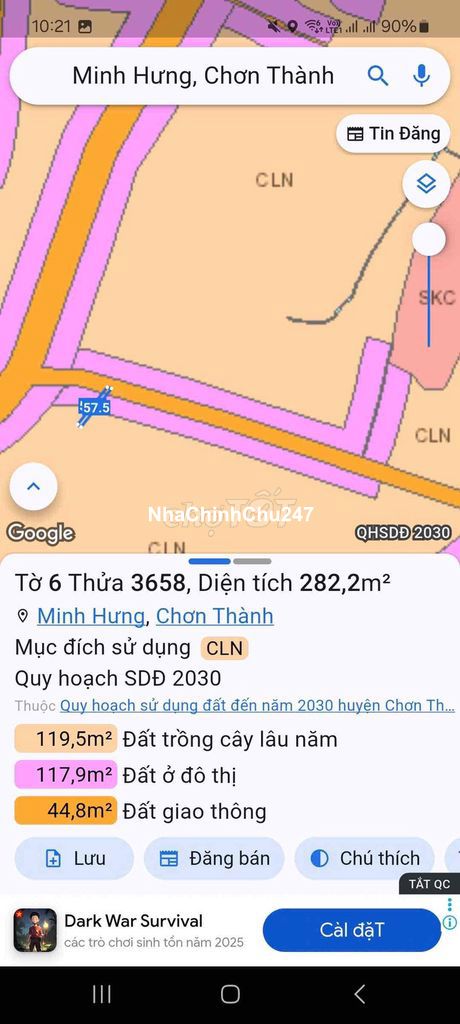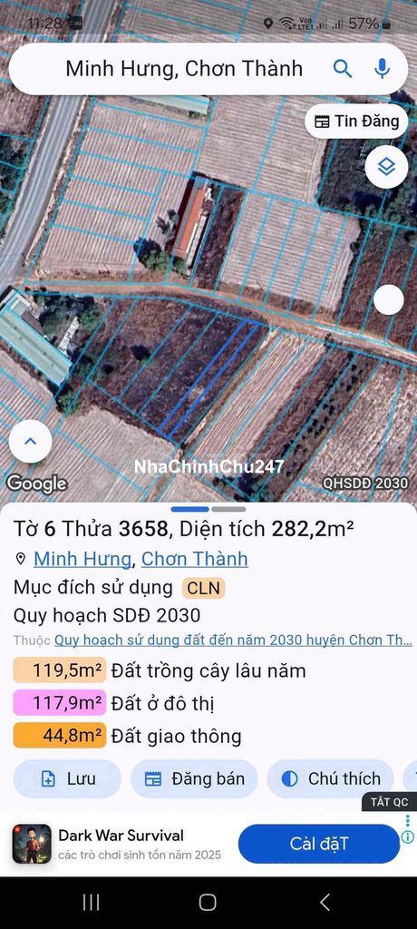 Dự án: Thông tin chi tiết: 💥. 2 lô liền kề .sây nhà trọ .ở tuyệt vời hơn nữa 🌟Đất thổ cư sát KCN Minh Hưng . 💥Dt Mỗi lô . 280 m Đất ở 100 ODT . 👉. Cách KCN Minh Hưng 800m 👉 Gần ql13 . Chơn thành 💰💰LH 595 tr /1 lô 📞. LH. ***. Zalo *** ➡️ em Qua đón. Đi xem đất thực tế