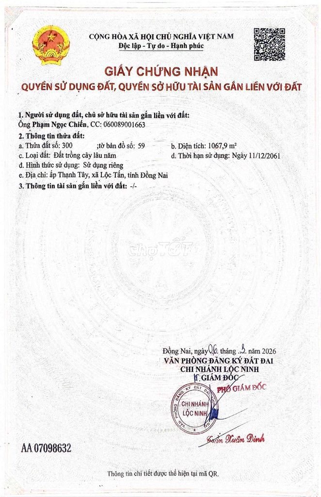Dự án: Thông tin chi tiết: Bán 4 miềng đất bình phước, 1 sổ 160m2 có thổ cư, 3 sổ đất lâu năm