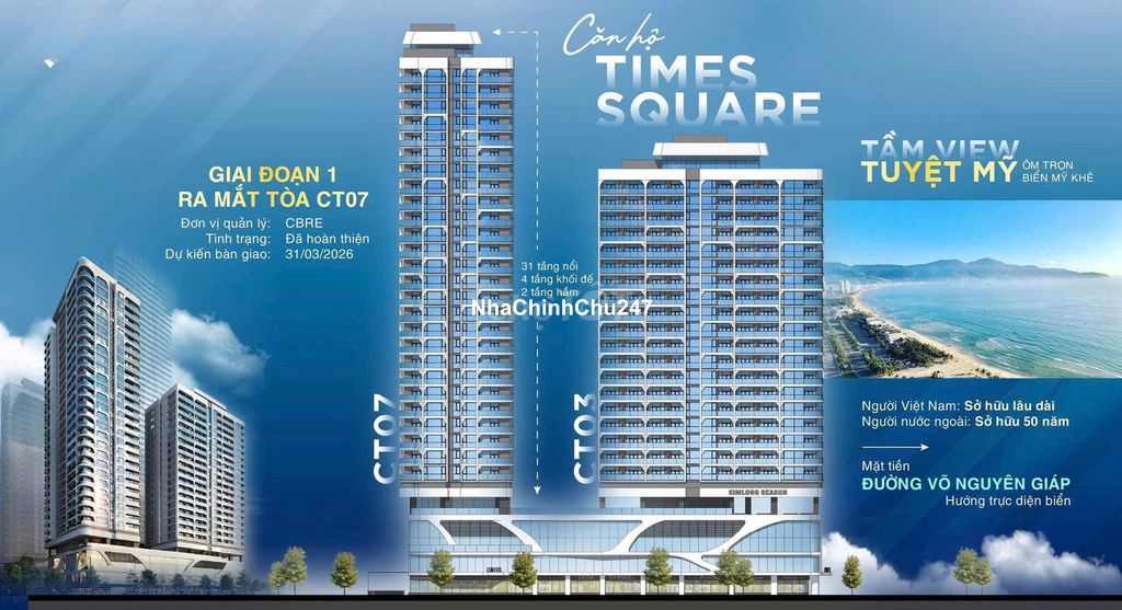 Chính chủ bán căn hộ biển 1PN Times Square sở hữu lâu dài. Cần bán nhanh căn hộ 1 phòng ngủ tại dự án Times Square vị trí trung tâm, sát biển, pháp lý sở hữu lâu dài cực kỳ hiếm hoi tại Đà Nẵng. Thông tin căn hộ: * Loại: 1PN thiết kế tối ưu, thoáng, dễ khai thác cho thuê. * Diện tích: ~50m². * View biển. * Nội thất: Bàn giao hoàn thiện cao cấp. * Pháp lý: Sở hữu lâu dài an tâm tích sản. Giá bán: Inbox hoặc Gọi trực tiếp *** để nhận giá *** cam kết không kê giá. Ưu điểm nổi bật: * Vị trí đắc địa: Vài bước ra biển, ngay trục đường du lịch sầm uất Võ Nguyên Giáp. * Khai thác cho thuê cực tốt: Khách du lịch, chuyên gia, lưu trú dài hạn lẫn ngắn hạn. * Dòng tiền ổn định: Thị trường cho thuê sẵn có, cho phép thuê dài hạn hoặc AirBnB. * Sản phẩm hiếm: Căn hộ biển sở hữu lâu dài là cực kỳ hi hữu trên thị trường. * Tiến độ bàn giao: Căn hộ đã hoàn thiện, sẵn sàng bàn giao. * 2 hầm giữ xe rộng rãi, thông minh cùng với quỹ đất vàng đang được xây dựng dùng để giữ xe ngay phía sau toà căn hộ. Phù hợp: * Nhà đầu tư muốn giữ tài sản an toàn, có dòng tiền đều đặn và ổn định. * Khách hàng thích du lịch nghỉ dưỡng ở ngay tâm điểm du lịch biển. * Khách sưu tầm tài sản biển hiếm hoi với pháp lý lâu dài. Liên hệ ngay để xem nhà & chốt giá tốt: (Zalo/Call) *** Thiện chí làm việc nhanh gọn, rõ ràng. Sẵn sàng hỗ trợ xem trực tiếp căn hộ.