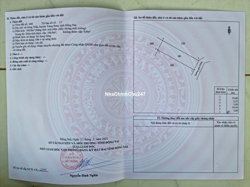 Chính chủ bán gấp đất sổ riêng thổ cư 100% gần KCN Bàu Xéo Hỗ trợ Bank