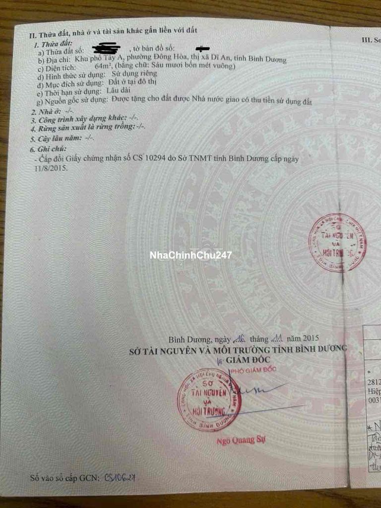 Bán nhà 1trệt 1lầu dân tự xây dựng kiên cố & chắc chắn... 👉Nhà 3 phòng ngủ, có phòng ngủ dưới, 2 wc, sân giặt phơi đồ… Địa chỉ: Phường Đông Hoà~Tp Dĩ An Vị trí nhà ngay đường Trần Hưng Đạo & Trần Văn Ơn Diện tích: 64m2~thổ cư 100% Ngang 4m dài 16m Đường 3 xe hơi né nhau!!! Giá bán: 4,250tỷ có thương lượng 👉***