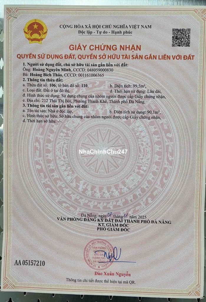 Bán nhà số 212 Thái Thị Bôi, phường Thanh Khê, tp Đà Nẵng. Đối diện chợ. Khu dân cư đông đúc, kinh doanh tốt. Khu vực trung tâm thành phố . Xung quanh đầy đủ tiện ích công cộng. Phù hợp để ở + kinh doanh hoặc cho thuê. Đường 7,5m. Vỉa hè 4m. Đất 3,9mx25m =99,5 m2 ( nở hậu 3,94m). Đã có sổ hồng. DTSD: 110m2. 2 phòng ngủ. Hướng Nam.
