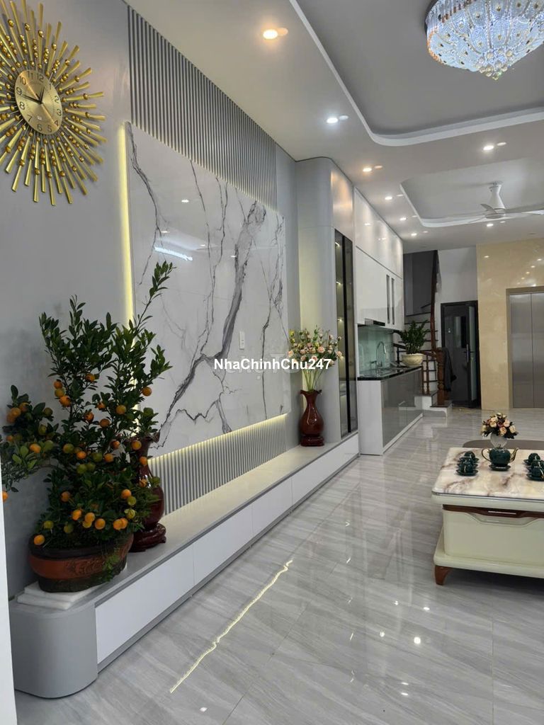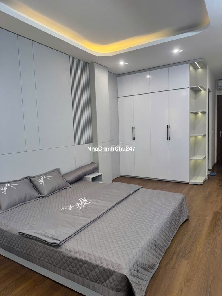 DT 45m x 6 tầng x MT 3:7m to ! rộng ! thoáng ! sáng ! Cách mặt phố 20m - Tầng 1: Phòng khách chính + Bếp (Hệ tủ bếp Acrylic bóng gương, kịch trần). - Tầng 2, 3, 4, 5: Mỗi tầng 1 phòng ngủ Master rộng rãi + WC khép kín (Trang bị vách kính tắm, sen cây). - Tầng 6: Phòng thờ + Sân phơi view thoáng. Chi tiết nội thất cao cấp: - Thang máy: Nhập khẩu, vận hành êm ái, tải trọng lớn. Cabin trang trí họa tiết trống đồng sang trọng. - Hệ thống tủ: Tủ quần áo, tủ bếp, kệ tivi sử dụng gỗ công nghiệp MDF chống ẩm, bề mặt phủ Melamine/Acrylic. - Trần & Ánh sáng: Trần thạch cao giật cấp kết hợp dải LED hắt vàng ấm (3000K) và đèn âm trần hiện đại. - Sàn: Sàn gỗ màu óc chó chống xước, tạo không gian ấm cúng cho phòng ngủ. - Cửa & Cầu thang: Cửa chính, tay vịn cầu thang bằng gỗ tự nhiên; Hệ cửa sổ nhôm kính Xingfa cách âm, cách nhiệt tiêu chuẩn. Pháp lý: Sổ đỏ chính chủ, sẵn sàng giao dịch. Giấp phép xây dựng đầy đủ "CHỈ VIỆC XÁCH VALI VỀ Ở LÀ CÓ THẬT" vì nội thất đã hoàn thiện từ rèm cửa đến decor. Giá bán: 13.5 tỷ, có thương lượng LH Ngay A Tuấn trực tiếp CC ĐT *** (Ảnh thật 100% kèm theo bài viết)