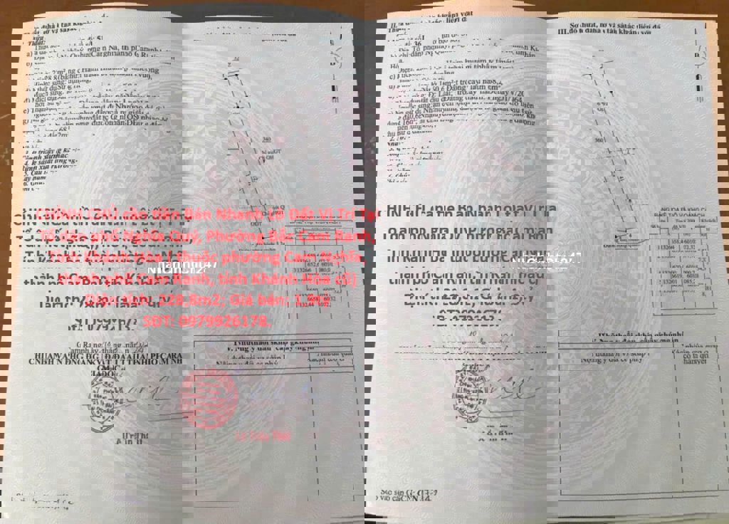 GIÁ TỐT - CHÍNH CHỦ cần tiền Bán Nhanh Lô Đất Vị Trí Tại Phường Bắc Cam Ranh, Tỉnh Khánh Hòa Địa chỉ : Tổ dân phố Nghĩa Quý, Phường Bắc Cam Ranh, Tỉnh Khánh Hòa ( thuộc phường Cam Nghĩa, thành phố Cam Ranh, tỉnh Khánh Hòa cũ) Diện tích: 228,8m2, full thổ cư, nở hậu. Giá bán: 1,9tỷ ( Thương lượng chính chủ*979926178. ) - Đường ô tô bê tông sạch sẽ - Phù hợp với nhu cầu xây dựng định cư lâu dài.lh**** - Tiện ích : Xung quanh đầy đủ, gần trường học , chợ , bệnh viện ..... - Pháp lý : Sổ hồng riêng, thủ tục nhanh chóng - Tiềm năng lớn: Nhà Đất luôn tăng giá theo tình hình hiện tại chung của BĐS của khu vực, bảo đảm sinh lời. Liên hệ chính chủ****.
