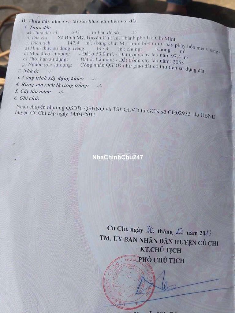 CHỦ BÁN GẤP NỀN NHÀ 7,5 X 50M NỞ HẬU 10M GIÁ 820TR THỊ TRẤN CỦ CHI