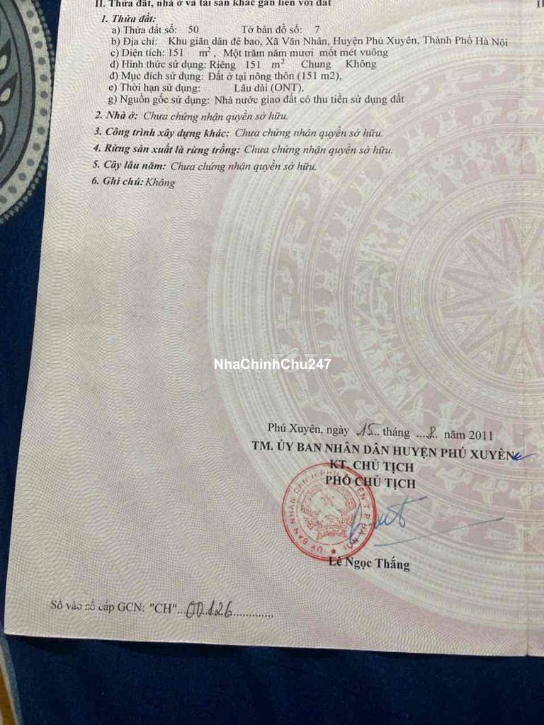 Dự án: Thông tin chi tiết: 151m2 - BDS Phú Xuyên, Hà Nội 📌Chính chủ không qua môi giới 📍Gần trường học , Trạm y tế 📍 Cách quốc lộ 1a chỉ 1km, gần lối lên cao tốc pháp vân cầu rẽ 📍 2 oto tránh nhau thoải mái 📍200m ra tuyến đường 2 chiều trục kinh tế vùng 📍 Pháp lý chuẩn