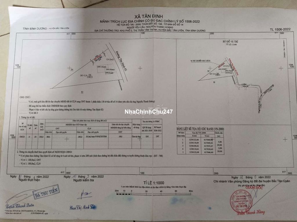 Chủ cần bán 2100m2 đường Tân Định 02 cũ. nay là xã Bắc Tân Uyên TP hcm.gan đường tạo lực cách 5km.cach trường học.chợ trung tâm 2km Ngang 50 sâu vào 95 có sẵn 400m2 thổ CƯ Rất phù hợp xây trọ - xây nhà vườn .nha xương công ty đã co 1 can nha cấp 4 hiện hữu ac cần thêm thông tin liên hệ