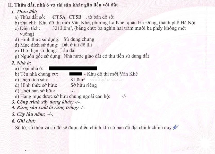 Chính chủ cần bán căn hộ chung cư nhà CT5 Văn Khê, tầng cao trên 15