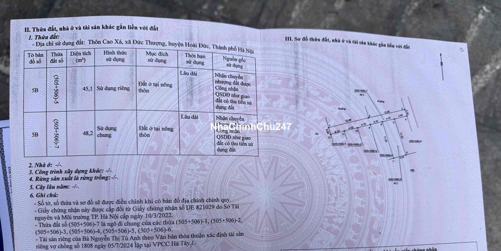 Dự án: Thông tin chi tiết: ĐẤT ĐỨC THƯỢNG_HOÀI ĐỨC 45m2 chỉ gần 4 tỷ ô tô đỗ cửa THÔNG CÁC NGẢ 👉 Khổ đất đẹp, vuông vắn, không lỗi phong thuỷ 👉 Ngõ thông, sát đất đấu giá và đường quy hoạch DH02 giao thông kết nối thuận tiện 👉 2p di chuyển ra QL 32 👉 Hạ tầng đồng bộ, điện đường trường trạm đầy đủ