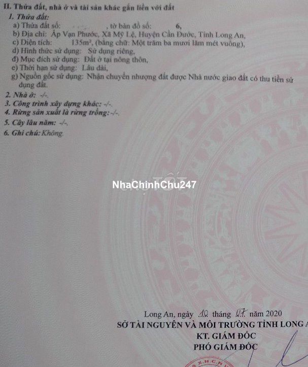 Địa chỉ: Đường ĐT 826, Xã Mỹ Lệ, Cần Đước, Long An Diện tích: 5x27m Giá : 1,5 tỷ Liên hệ : *** + Đường mở rộng giao thông di chuyển thuận tiện + Cách đường ĐT826 chỉ 300m + Gần dân cư , thuận tiện an cư và đầu tư + Pháp lý rõ ràng, sổ hồng riêng + Tiềm năng lớn: Đất luôn tăng theo tình hình chung BĐS của khu vực, đảm bảo sinh lời.