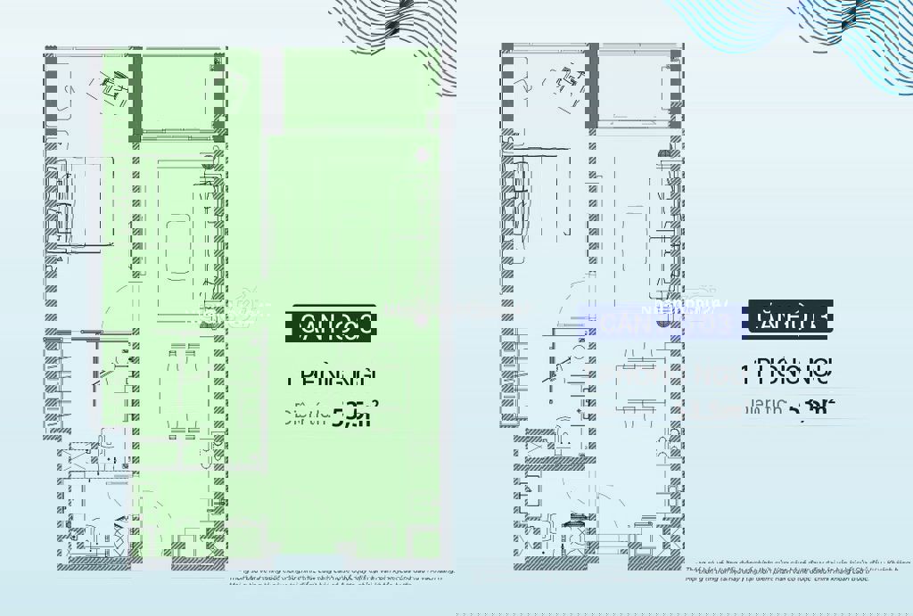 Diện tích: 53 m2