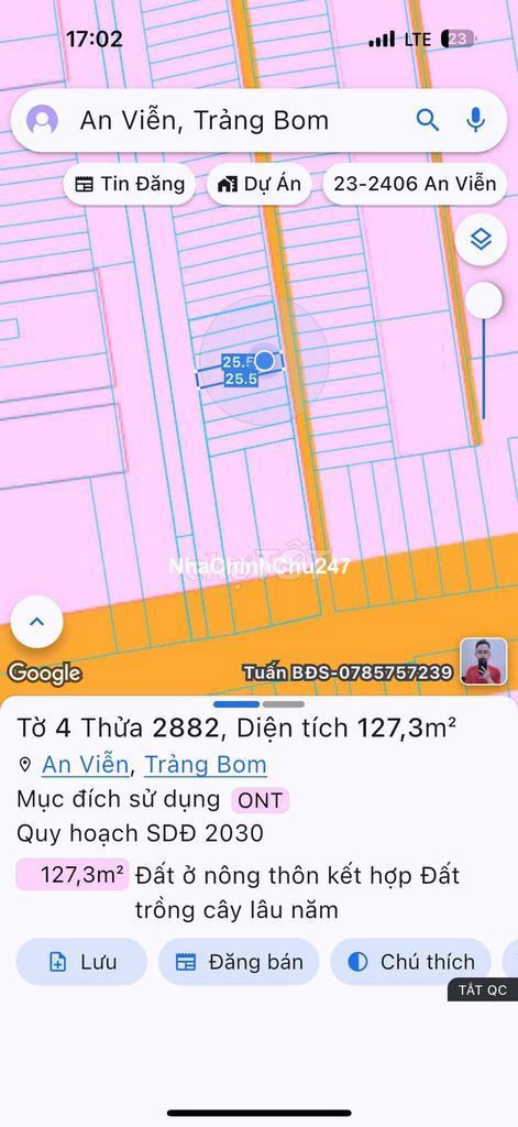 Dự án: Thông tin chi tiết: Chính chủ gửi bán đất an viễn - đồng nai Diện tích 5x25,5 full thổ cư vị trí trung tâm Dân cư ở đông xây dựng thoải mái Pháp lý rõ ràng có thể công chứng trong ngày Giá bán 1ty350 Ac thiện chí lh ***