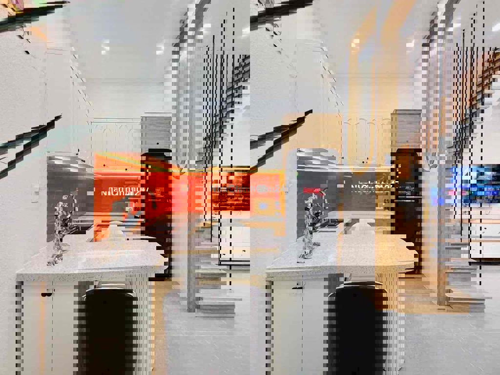 EM VILLA MINI MANG HƠI GIÓ ĐÀ LẠT VỀ GÒ VẤP + Đc: Quang Trung, P.14 Gò Vấp + DT: 7x7m, nở hậu 7,5m. 1 trệt, 1 lầu. + Công năng: 3PN, 3WC, phòng khách, bếp + Nhà thiết kế nhẹ nhàng, mang hơi gió mát mẻ giữa cái nóng bức của SG. + Tặng toàn bộ nội thất, chỉ việc vào ở + Hẻm xe hơi đến nhà, cách mặt tiền vài chục m, khu dân trí, an ninh tốt. Giá chỉ: 4ty990-Bớt Lộc Hh môi giới 1,5% LH: chính chủ