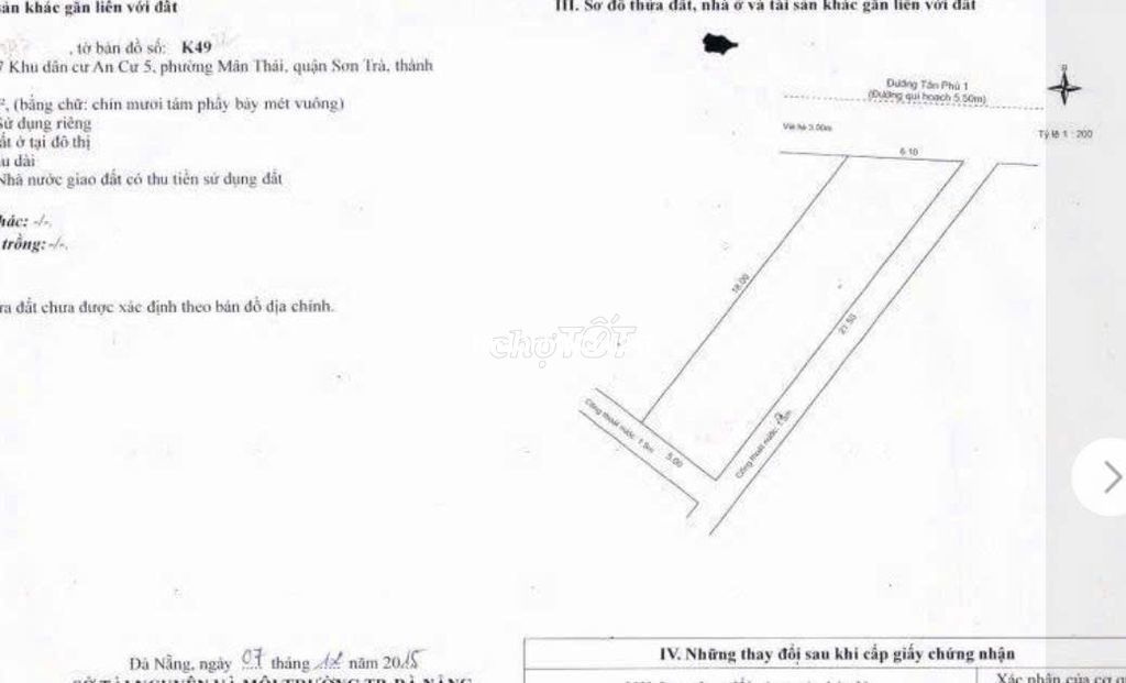 ✈️✈️Chào bán lô đất Tân Phú , Sơn Trà, Đà Nẵng 💥 Mô tả: - Diện tích: 98,7 m2 - Đất 3 mặt thoáng (1 mặt tiền, 2 đường thoát hiểm) - Nằm sát trục Hồ Nghinh (Hà Kỳ Ngộ), cách biển 300m - Rất thích hợp xây tòa CHDV, khai thác kinh doanh hiệu quả 👉 Giá chào bán: 9,8 tỷ ☎️*** Linh
