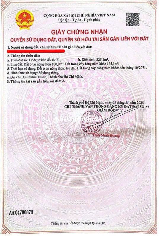 🚨Khách hàng đang ngộp cần gửi bán gấp miếng đất ⛳Lô đất Phú Giáo- Bình Dương vị trí đẹp 🟫Diện tích 18m x 22m Có 100 m² thổ cư 🛣️Đường bê tông 16m , có điện Gần đường tỉnh 42m tiện kinh doanh buôn bán, gần khu công nghiệp , . . . Vị trí : Phước Thành, TP Hồ Chí Minh. 📄Có sổ hồng riêng - công chứng liền 🏦Ngân hàng hỗ trợ vay đến 80% 💵Giá 5XX triệu - còn thương lượng nhẹ cho khách hàng thiện chí ☎️Liên hệ xem đất : *** - Mai Ảnh
