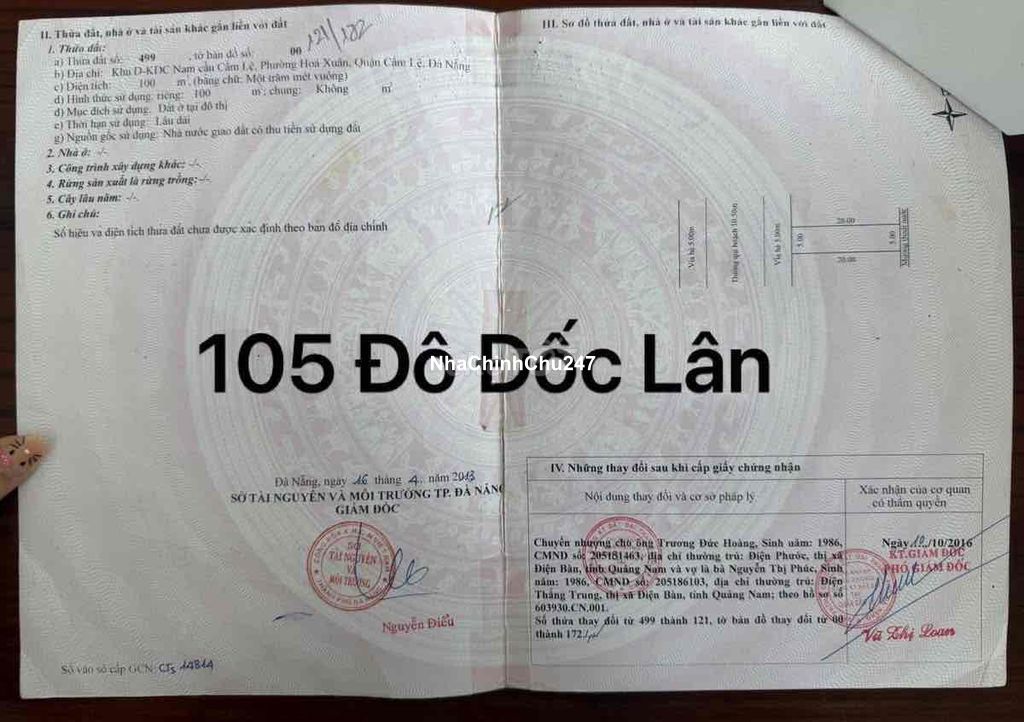 Dự án: Thông tin chi tiết: Bán lô đường 10.5m lề 5m Đô Đốc Lân - Hoà Xuân( lên số nhà 105, lô đất sạch đẹp) - DT: 100m(5*20) - Hướng: Tây - Đường 10.5m thông, ngay gần trường C3 Nguyễn Văn Thoại 👉Giá: 6 tỷ 250 tr tl Lh *** Trang xem đất và thương lượng cc