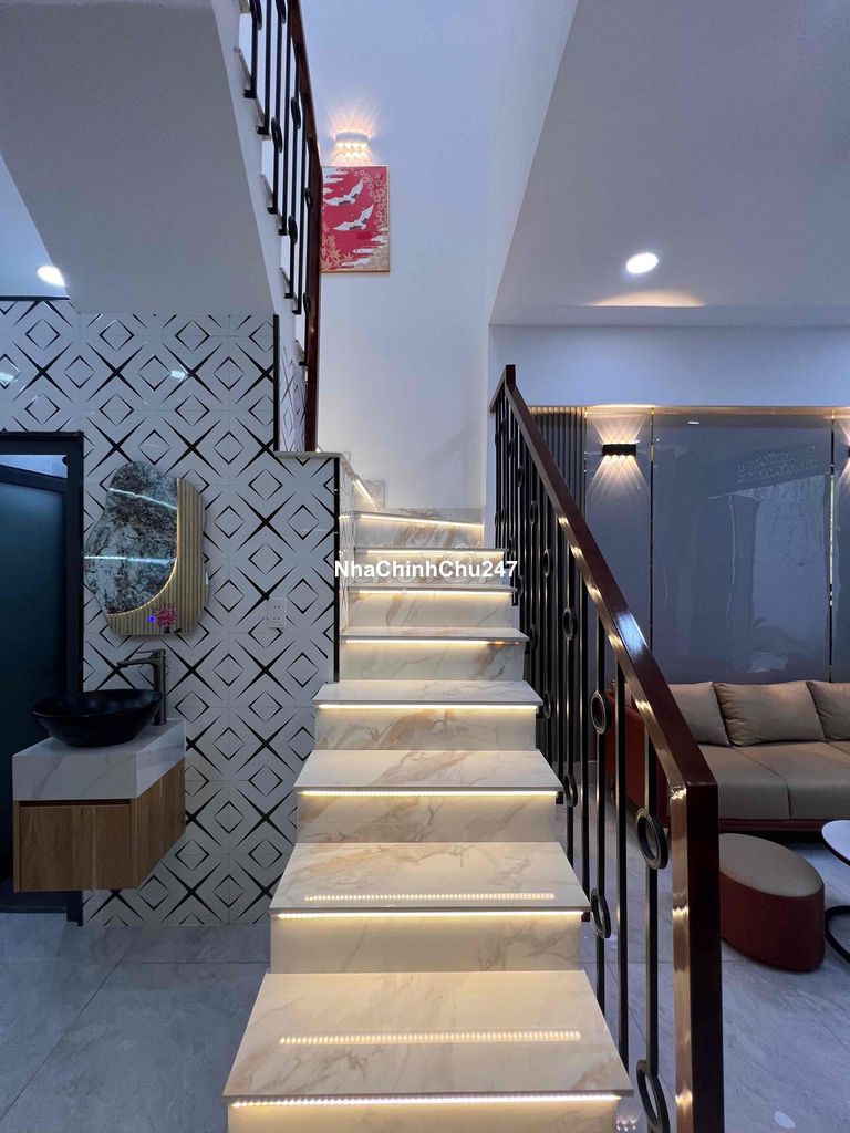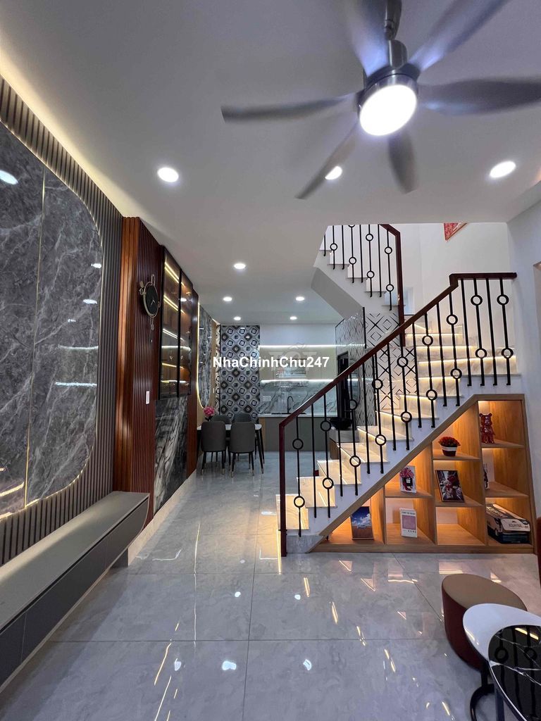 Dự án: Thông tin chi tiết: +)Kết cấu: 1 Trệt 1 Lầu. Gồm 2 phòng ngủ, 2 nhà vệ sinh, phòng khách, bếp, ban công, giếng trời. +)Hẻm trước nhà 3m, cách 30m ra HXH, thông Trần Nhân Tông. +)Vị trí đẹp gần Phan Huy Ích, tuyến giao Trường Chinh-Cộng Hoà, thuận tiện di chuyển ra nhà ga T3 chỉ 15 phút. +)Tặng full nội thất, chỉ việc xách valy vào ở ngay. +)Sổ hồng riêng, công chứng mua bán ngay.