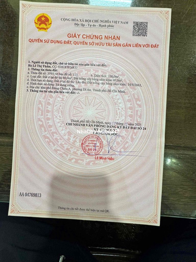 CHÍNH CHỦ CẦN BÁN MT NGAY VINCOM DĨ AN. DT 100M. NGANG 5x20m. Tiện ích
