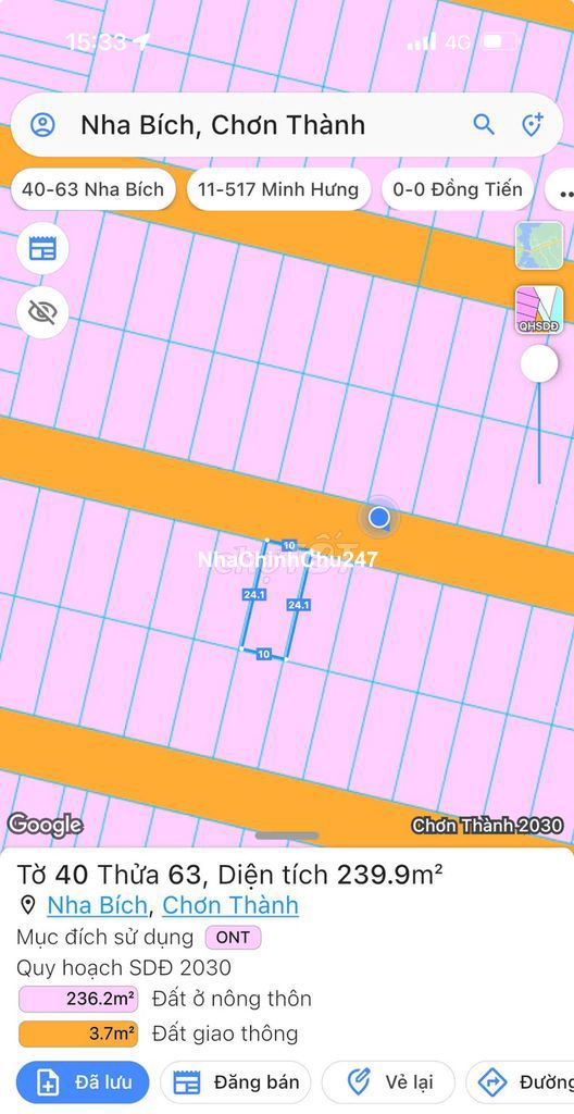 Ngang 10m x 24m 240m2 full thổ cư Quy hoạch đồng bộ Đường ô tô