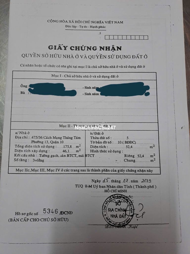 HHMG 1%, chính chủ bán HXH 7m 475/36 đường Cách Mạng Tháng 8 P13 Q10,