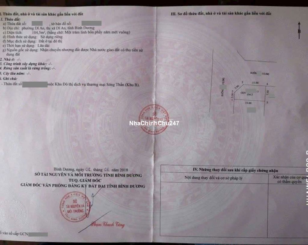 Đất 2mặt tiền kinh doanh khu VinCom Dĩ An, gần ngã tư 550, phường Dĩ An, TP Dĩ An. Đất 5.2 tỷ TL- 104.5m2 (ngang 7.5m) Thổ cư 100%. Sổ hồng riêng Hỗ trợ vay ngân hàng 70% Vị trí: Đất trong KDC Sóng Thần B, mặt tiền đường thông, rộng 12m có vỉa hè, kinh doanh tốt, đường ĐT 743 vào 50m, gần ngã tư Vincom 550 vào 500m, ngay ngân hàng Vietcombank Dĩ An. Gần đường Lý Thường Kiệt, gần bên quân đoàn 4 và Tp Thủ Đức, khu vực trung tâm, đi lại thuận tiện.