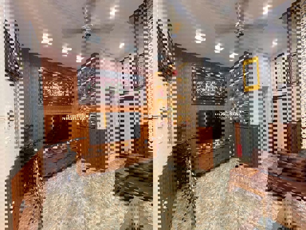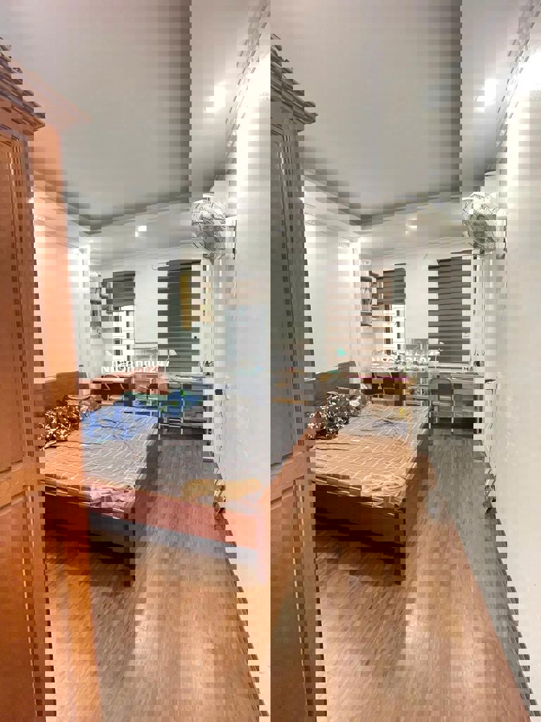 Trung tâm quận Hoàng Mai, giao thông thuận tiện đi nhiều ngả. Nhà đẹp 2 mặt thoáng, mặt tiền rộng, thiết kế cầu thang cuối. Tầng1: P. Khách + bếp + wc Tầng2,3,4: 3P. Ngủ rộng khép kín wc Tầng5: P. Thờ + Sân phơi. Sổ đỏ chính chủ nở hậu.